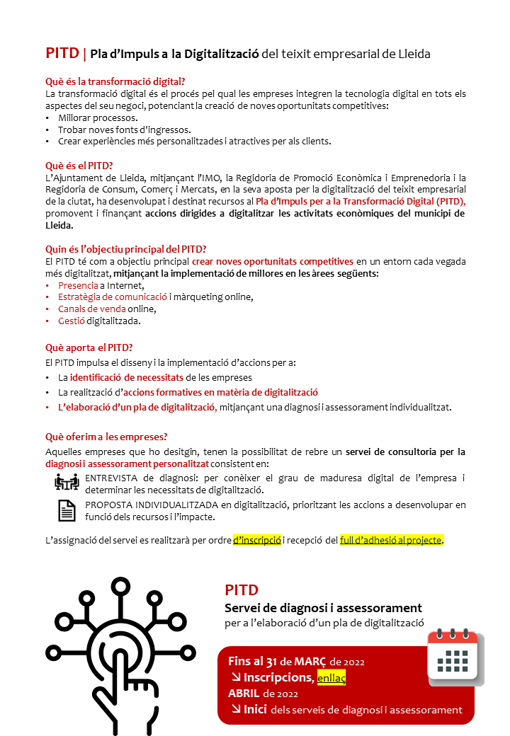 Últim dia per la presentació de sol·licituds d'ajuts al teixit empresarial de Lleida per afavorir l'autoocupació i la consolidació. 2019