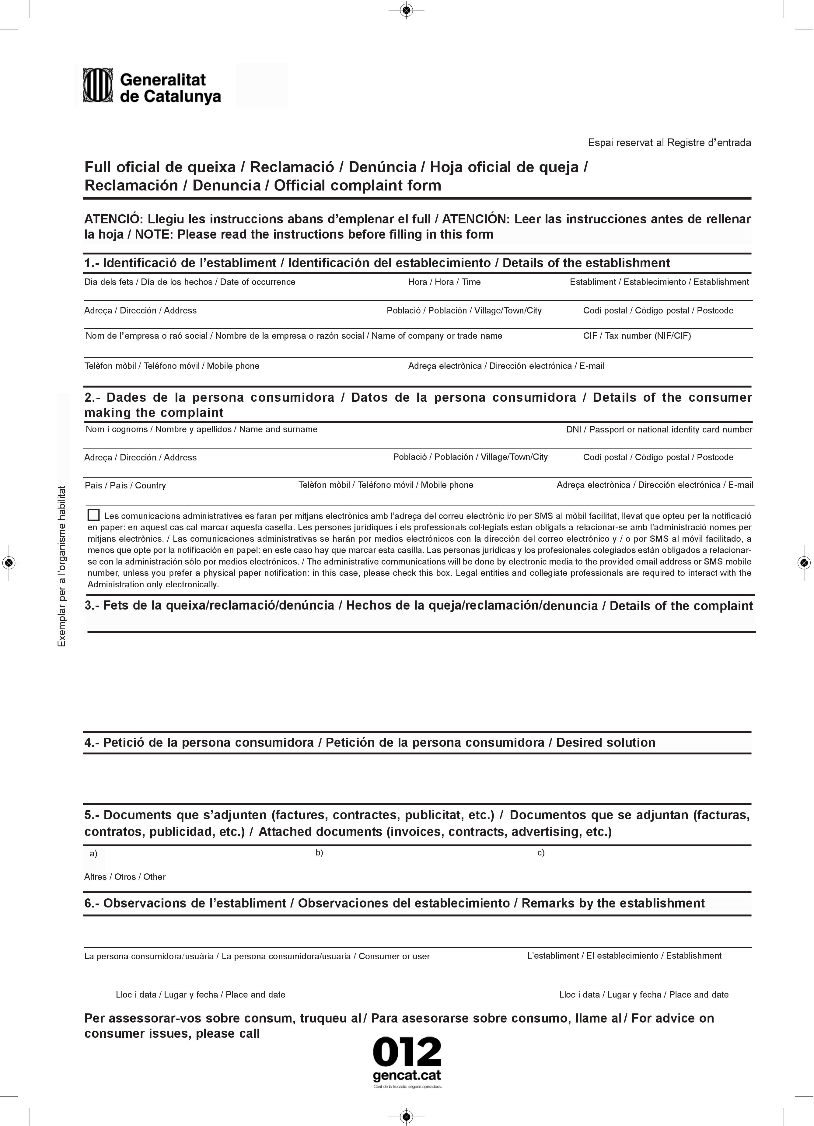 Full reclamació