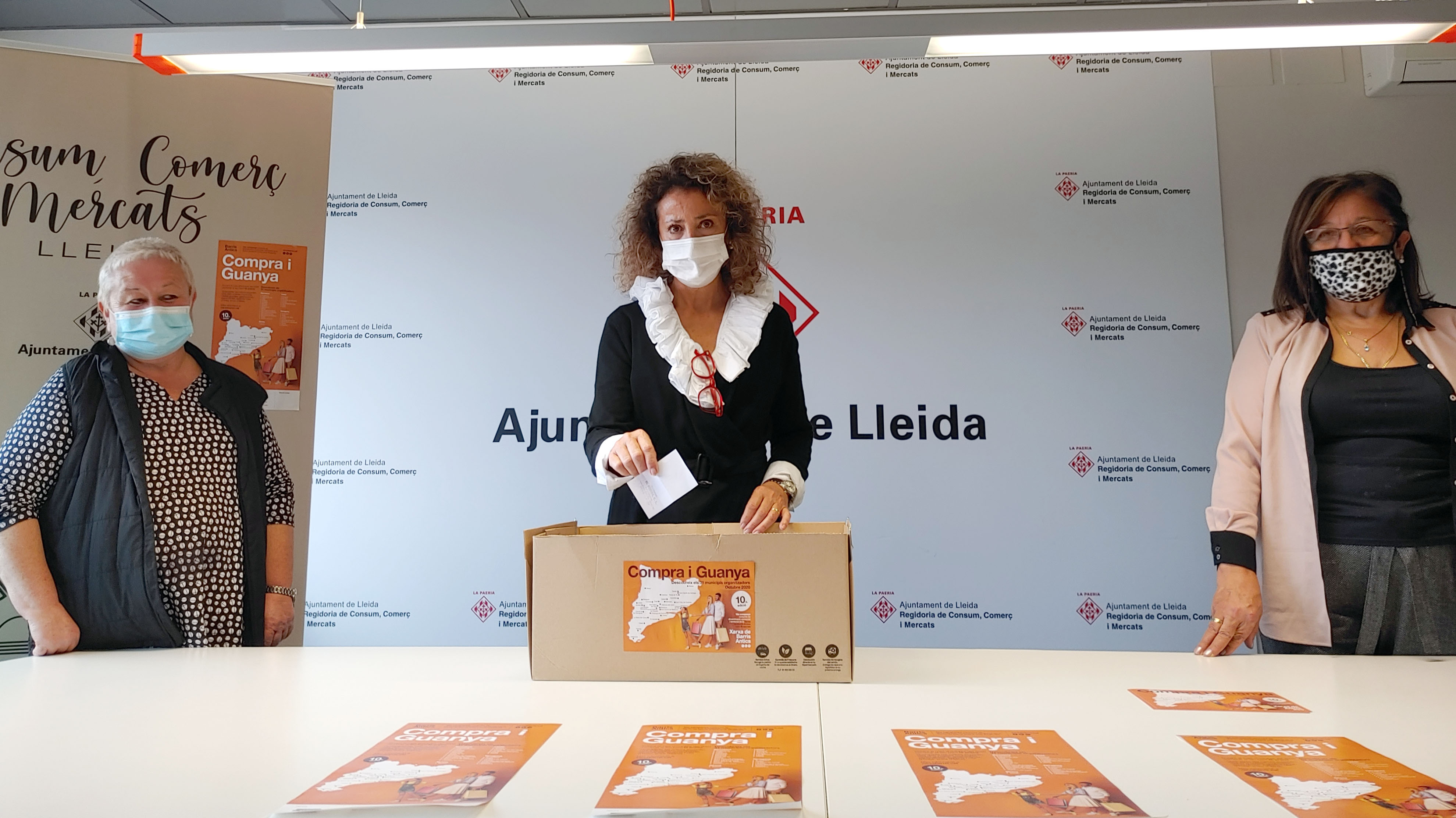 L’Ajuntament de Lleida, a través de la regidoria de Consum, Comerç i Mercats, ha fet avui el sorteig de la campanya ‘Compra i guanya’, que es va iniciar l’1 d’octubre, coordinada per la Xarxa de Barris Antics amb Projectes. La regidora d’aquesta àrea, Marta Gispert, ha assistit al sorteig, acompanyada de les presidentes de tres les associacions de comerciants que participen en la campanya: Dolores Garzón, de l’Associació de Comerciants i Empresaris de Magraners; Cristina Armergol, de l’Associació de Veïns i Comerciants del Centre Històric, i Estefania Reñé, de l’Associació d’Empresaris del Centre Històric.